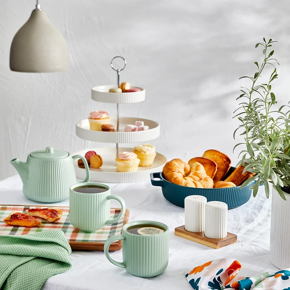 Enjoy your favourite hot drinks with the Alex Liddy Harley II Set of 2 Mug 380ml in Sage. Perfect for enjoying a cup of coffee, tea, or hot chocolate, these mugs will keep your drinks warm and add to the aesthetic appeal of your kitchenware collection. The Harley range, a name that means from the hares’ wood, brings you luxury products designed with woodland tones to beautify your kitchen and home. With a ribbed detail around the outside and a matte finish in a soft shade of sage green, these mugs will add a touch of luxury to your kitchen. They also make a great gift idea, coming beautifully boxed. Pairs well with the matching Alex Liddy Harley II Teapot 1L Sage, sold separately.