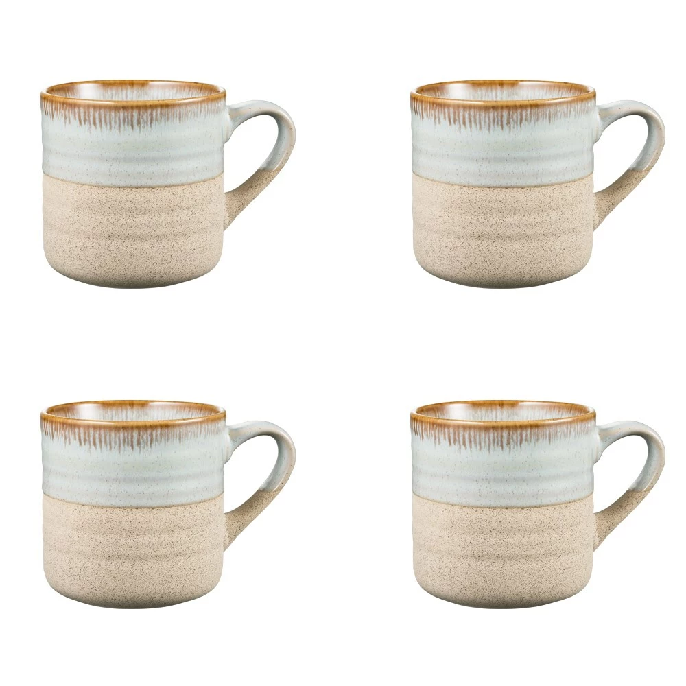 Alex Liddy stoneware is of a premium quality featuring a split tone reactive glaze of blue and natural textured stone, these mugs are sure to impress your guests. Like a fingerprint, no two mugs will look the same. These generous sized 440ml mugs feel comfortable to hold with a beautifully long body and large handle. The Alex Liddy Lara Mugs are perfect for your favourite hot beverages of X-Large coffee and teas, plus soups and mug cakes. The Alex Liddy Lara Mugs are stunning and show stopping on their own or compliment the look by combining with Alex Liddy Lara Set of 4 Mugs 440ml Pink. Packed for gifting, the Alex Liddy Lara Set of 4 Mugs 440ml is an excellent gift for birthdays, and other events.