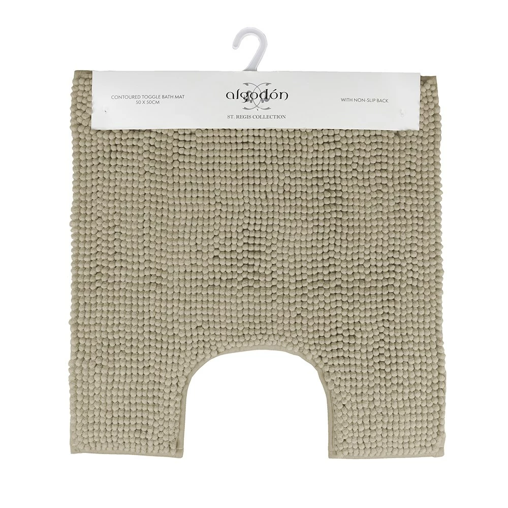 Have a warm and cosy bathroom with the Algodon Toggle Contoured Bath Mat 50 x 50cm Stone