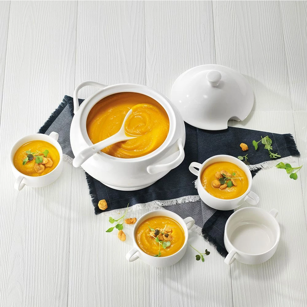- Equipped with a porcelain serving spoon and a lid to ensure soup stays nice and hot on the dining table
