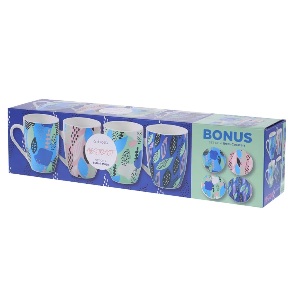 Break time? Or maybe morning perk-up. No better way to clear the fog from your brain than with a steaming hot cup of tea or coffee served up in the Ambrosia Mug & Coaster Set of 4 350ml! This gorgeous mug set includes 4 mugs expertly crafted from the finest quality New Bone China for ensured durability and appeal over time. As well as 4 matching bonus coasters.Thanks to their sturdy construction, the Ambrosia Mug & Coaster Set of 4 350ml will keep your hot tea, coffee or hot chocolate at its optimal temperature so that you can kick back and enjoy without a care in the world. Featuring 4 stunning designs, the Ambrosia Mug & Coaster Set of 4 350ml were made to stand out among your existing mug and drinkware collection. Microwave and dishwasher friendly for convenience, you can even use the Ambrosia Mug & Coaster Set of 4 350ml to make decadent and delicious mug takes for an evening treat! Packaged for gifting, Ambrosia Mug & Coaster Set of 4 350ml make a wonderful present for birthdays, anniversaries, and other special.