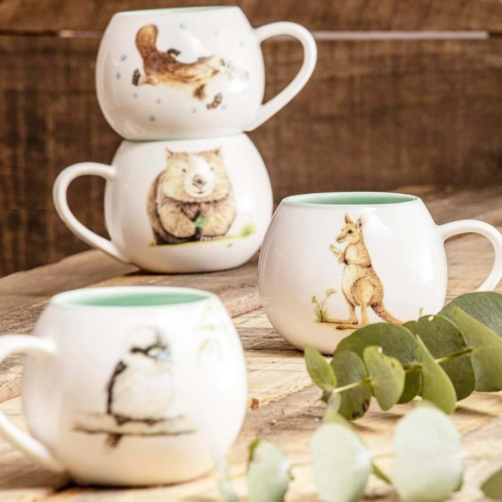 The adorable Ashdene Bush Buddies Kangaroo Mini Hug Mug features beautiful watercolour illustrations by talented Australian artist Sarah Hardy