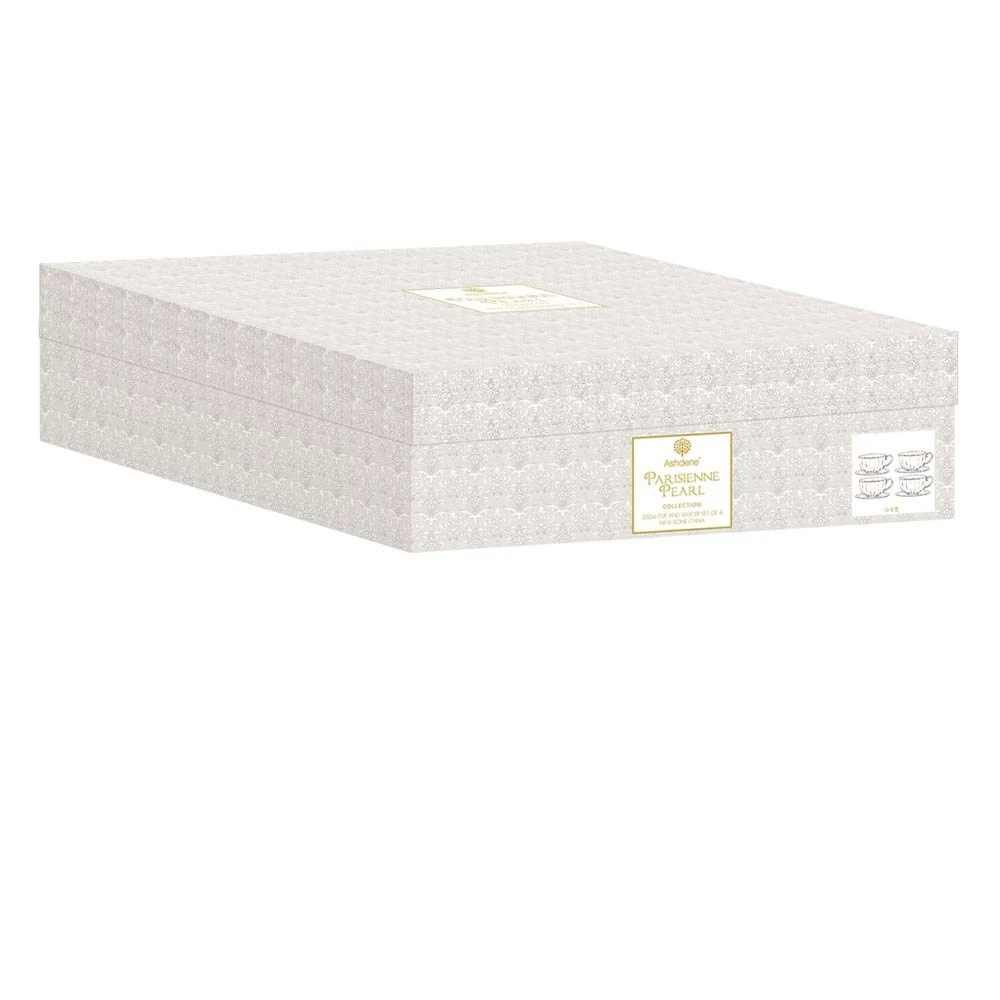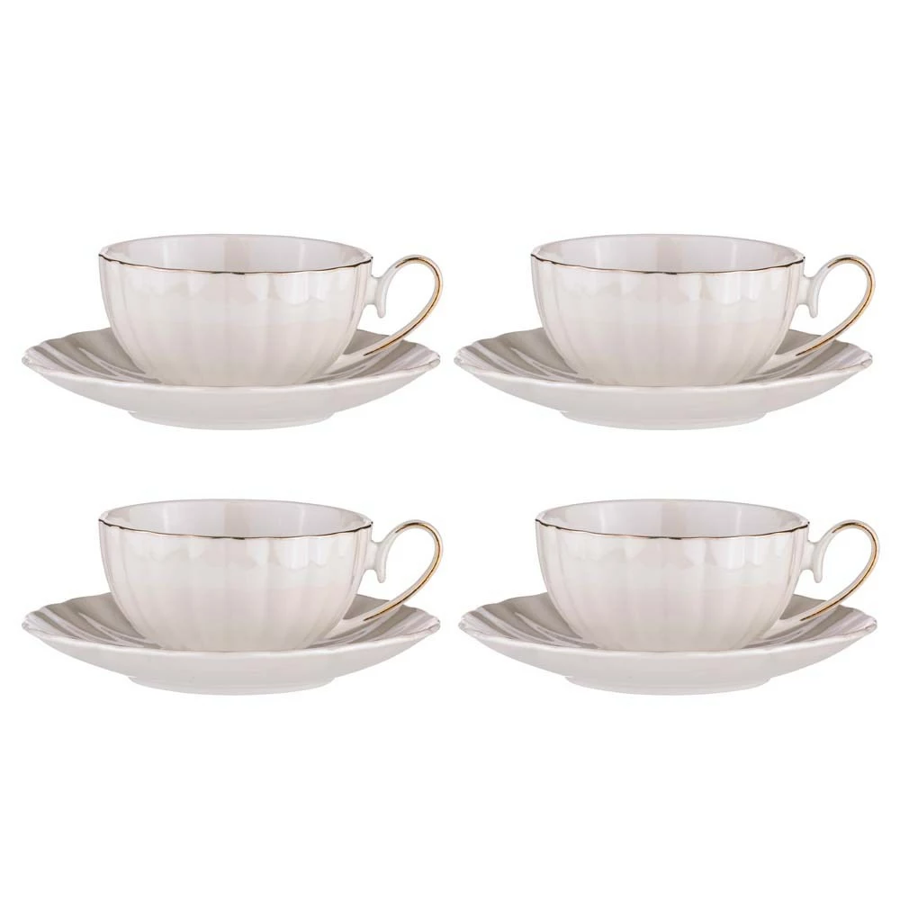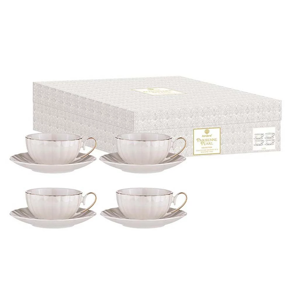 Infuse your tabletop with the chic French elegance of the Ashdene Parisienne Pearl 4 Piece Cup & Saucer Set White