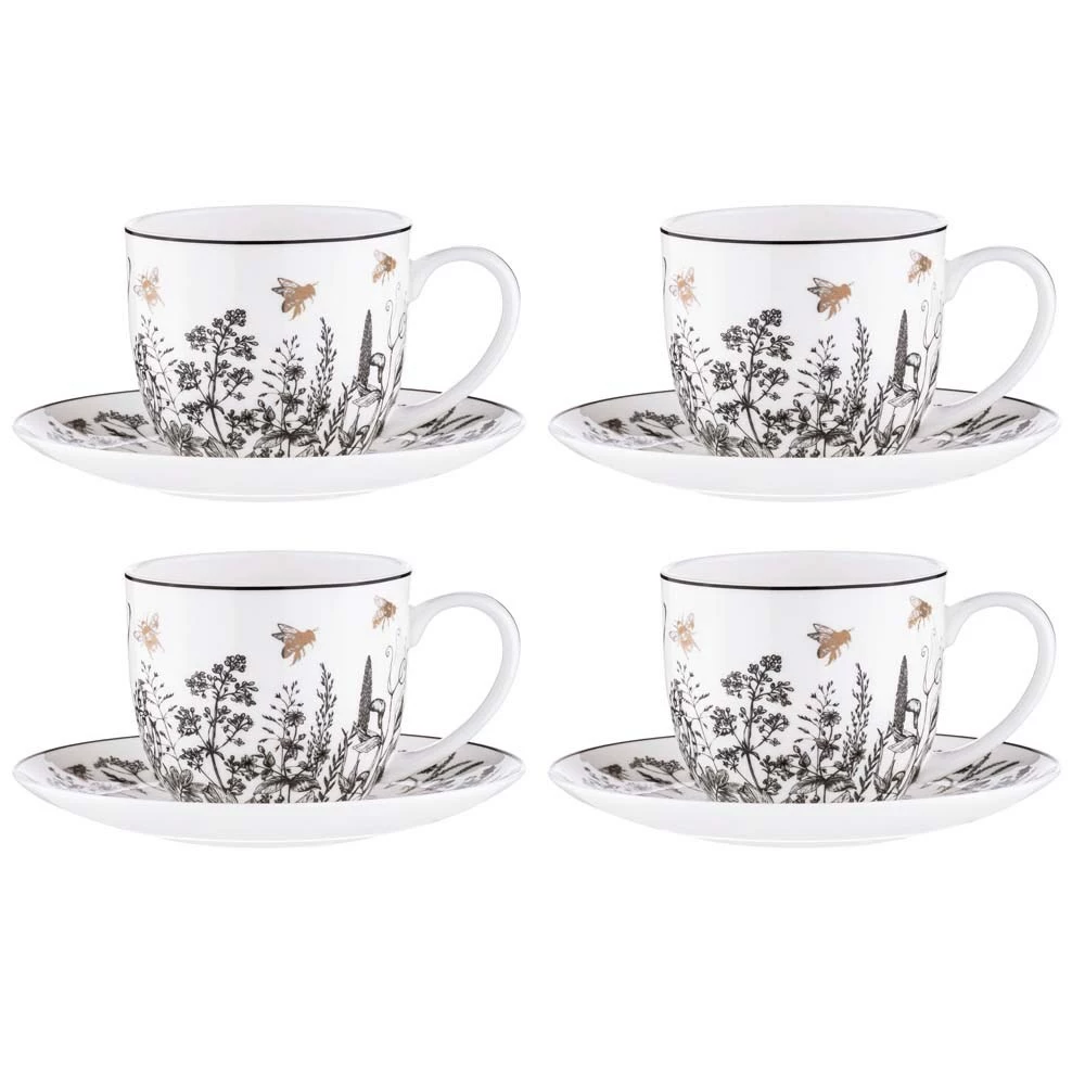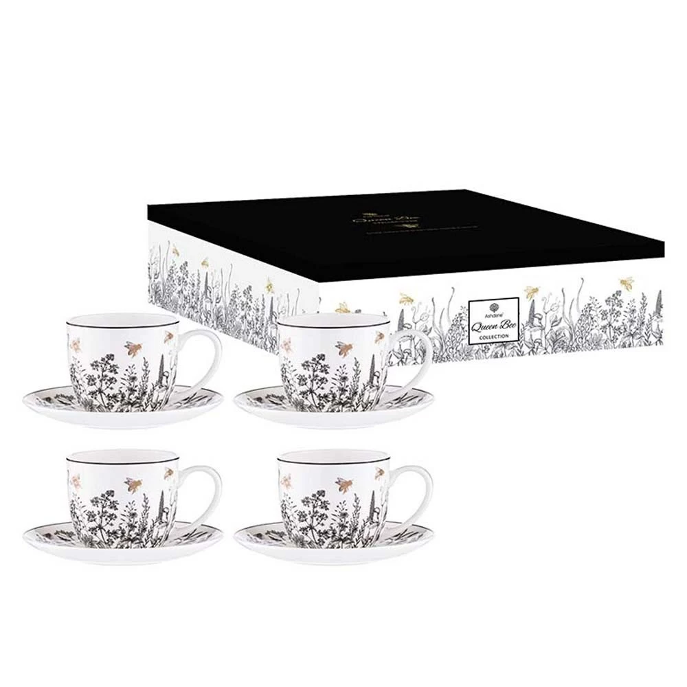 Pretty wildflowers and opulent gold bees grace the stunning Ashdene Queen Bee 4 Piece Cup & Saucer Set 230ml