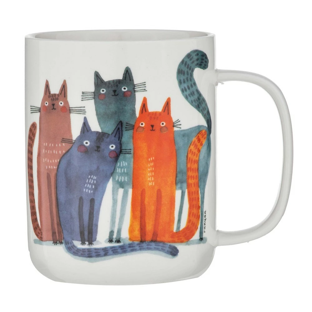 A purr-fect teatime starts with the Ashdene Quirky Cats Four Friends Mug 400ml. The Ashdene Quirky Cats Four Friends Mug 400ml features artwork by artist Terry Runyan, whose signature style perfectly captures the quirky personalities of our favourite feline friends. The mug, constructed from quality new bone china, features a generous 400ml capacity for enjoying your favourite hot tea, coffee and other beverages. Dishwasher and microwave safe for ultimate convenience, it makes a fantastic addition to your drinkware collection and can be paired with more pieces from the whimsical Quirky Cats collection. With its fun and playful aesthetic, the Ashdene Quirky Cats Four Friends Mug 400ml makes a thoughtful gift for any of the cat lovers in your life.