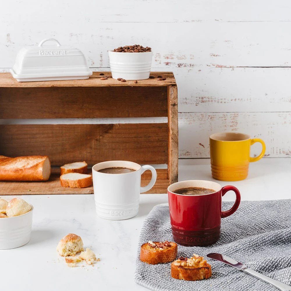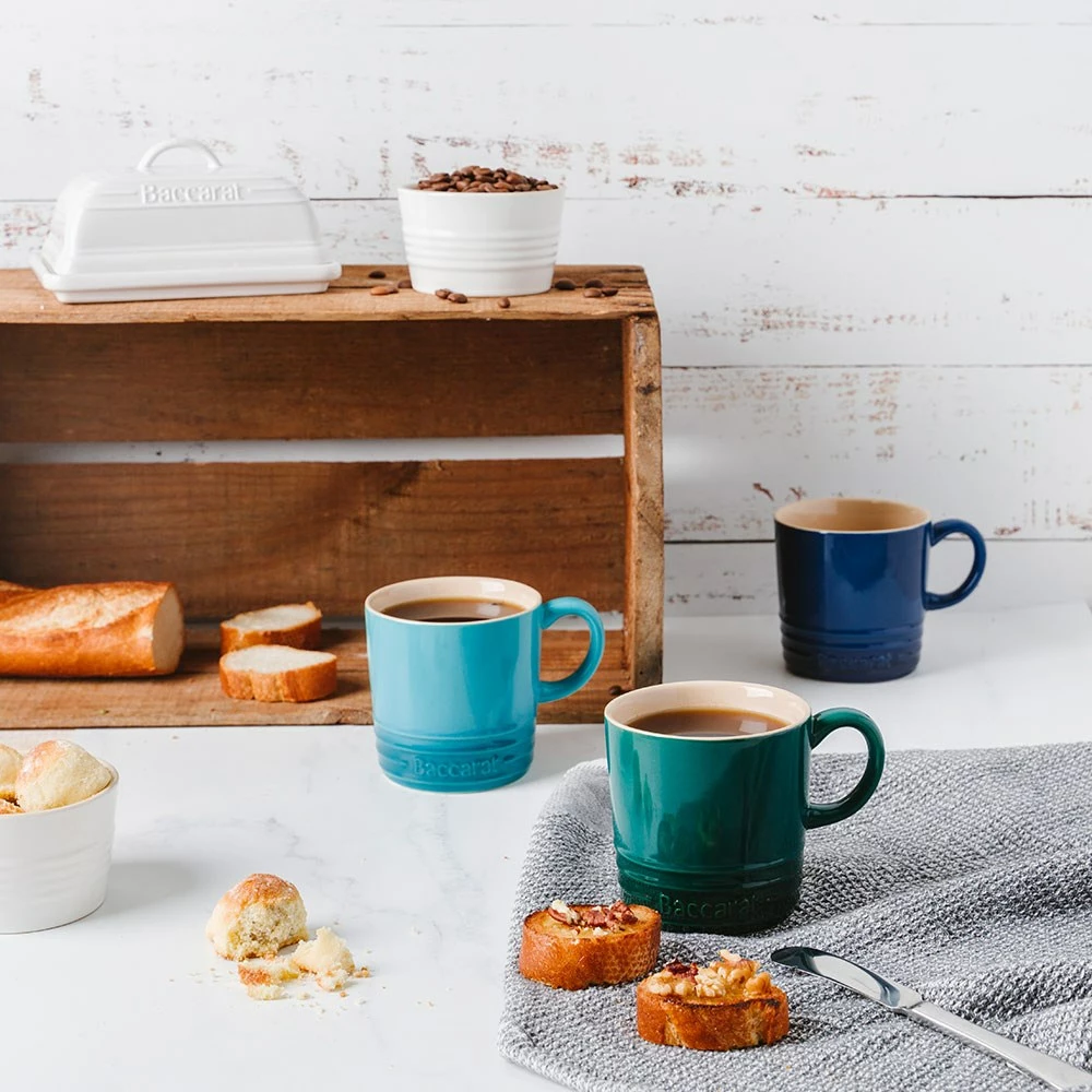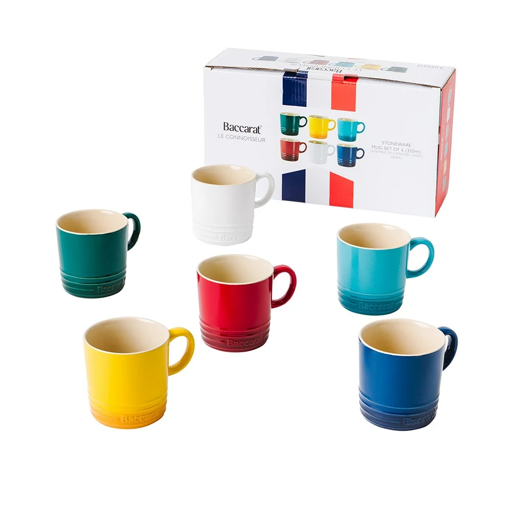 Add a splash of French sensibility to your table setting with the Baccarat Le Connoisseur Stoneware Mug Set of 6 350ml. These finely crafted mugs feature a durable stoneware construction adorned with the classic tricolor palette, complemented by new ink, honey and sea designs. The flared handles offer a gentle curve for effortless holding and sipping, while a generous 350ml capacity allows for a sizeable tea or coffee. Ready to accompany a delicious breakfast or afternoon tea, the Le Connoisseur Stoneware Mug Set is an excellent centrepiece for entertaining at home. Clean and timeless, the vivid styling of each mug complements any table setting. Evoking French history with a tricolor inspired design, the Baccarat Le Connoisseur Stoneware Mug Set of 6 is dishwasher safe for your ease and convenience.