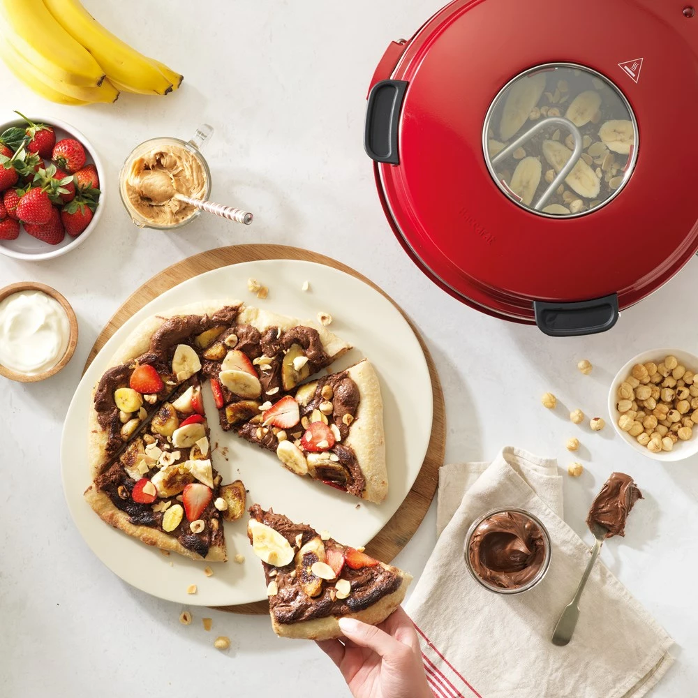 - Simple dial system activates the dual heating elements, allowing you to set the top heat, base heat, or both reaching up to 400°C to get traditional wood fired results