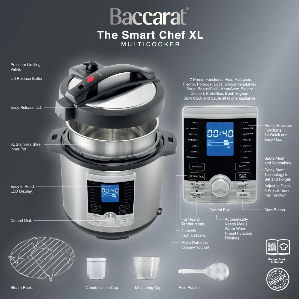 - Generous, extra-large 8L stainless steel cooking pot to serve up to 6-8 people