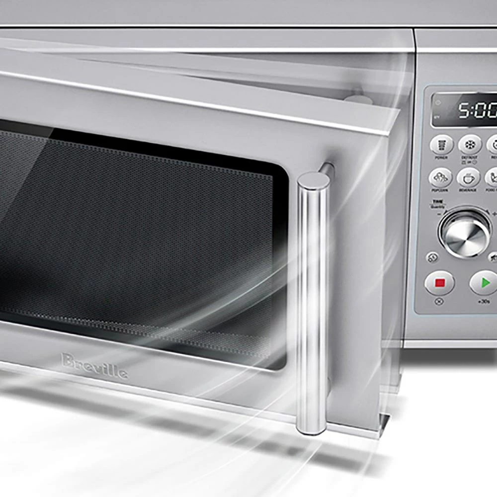 With a 25L capacity, the Compact Wave Soft Close from Breville is big on convenience. The Compact Wave Microwave from Breville will take the guesswork out of cooking, as this appliance precisely reheats, gently defrosts, and cooks delicious food with easy shortcuts and a food menu. Engineered with an 80% quieter* soft close door. Compared to the BMO735 door closing sound (99.6dBA), the soft closing door sound is 81.5dBA based on independent laboratory testing performed on 21/06/2018. 12 Months Warranty. Wipe down stand with a damp cloth. .