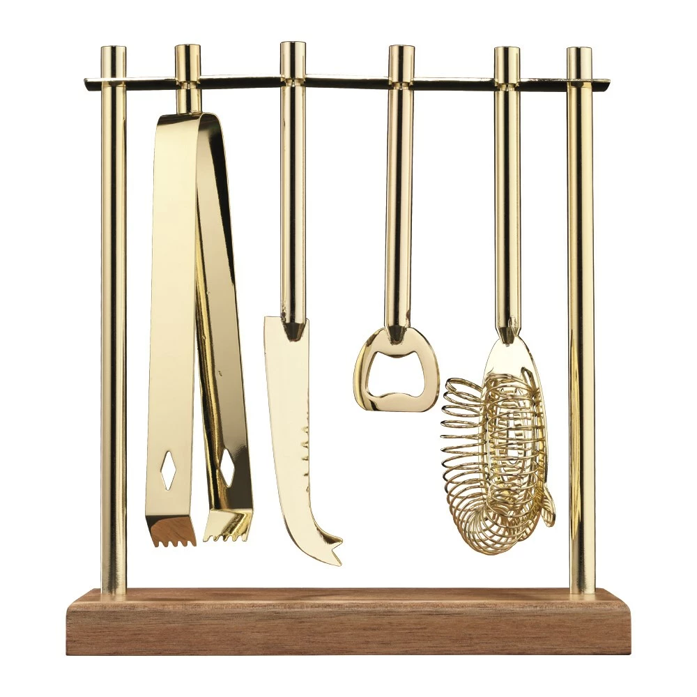 - Contains 1 x strainer, 1 x bottle opener, 1 x garnish knife and 1 x ice tongs.