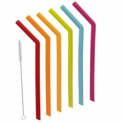 Joie Rainbow 6 Piece Silicone Smoothie Straw Set With Cleaning Brush