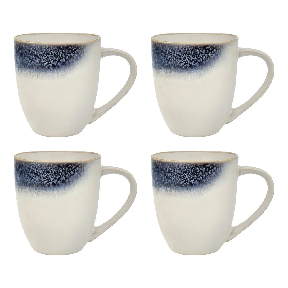 Bring the tranquil ideals of the coast to the tabletop with the Ecology Atol Set of 4 Mugs 380ml Deep Blue. Drawing inspiration from crashing waves and deep blue seas, the Ecology Atol Set of 4 Mugs 380ml Deep Blue features a breathtaking, transparent, mottled blue design that encircles its outer edges. These mugs, crafted from premium stoneware, feature an organic profile and an exposed base. Natural-toned rims frame the reactive blue glaze sitting atop a creamy white base. With a sleek, high gloss finish, this stunning mug set is perfect for entertaining. For a coordinated tabletop aesthetic, match the Ecology Atol Set of 4 Mugs 380ml Deep Blue with other dining pieces from the beautiful Atol collection.
