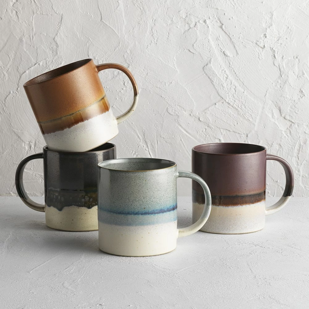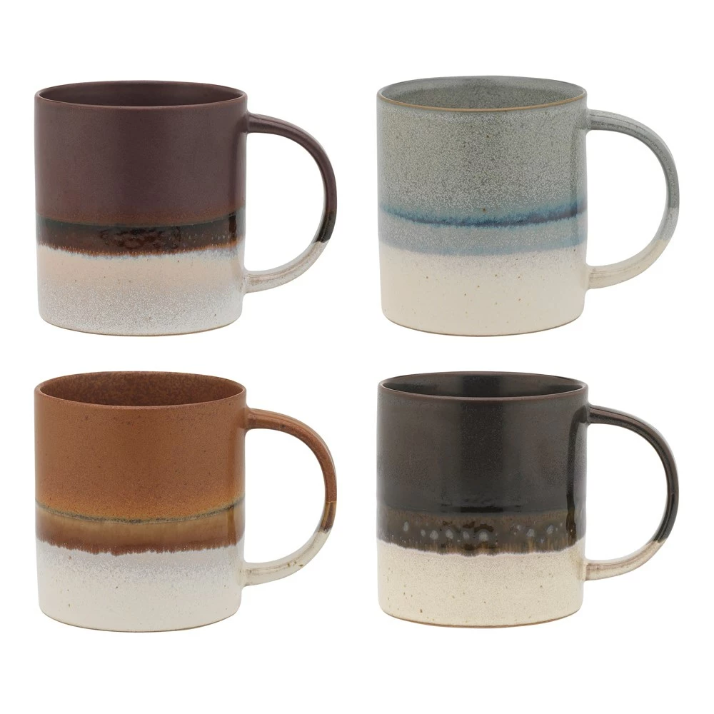 Capturing the movement and captivating colour variations of natural rock formations, the Ecology Erode Set of 4 Mugs 300ml brings a breathtaking display to the tabletop. Crafted from premium quality stoneware, the Ecology Erode Set of 4 Mugs 300ml boasts simple yet elegant shapes with 300ml capacities that are a delight for enjoying morning coffee or afternoon tea. With four coordinating tones, the set features organic hues of Sea, Dusk, Midnight and Sand. Hand-finished with a reactive glaze, each mug blends into stunning sea-foam white bases. Presented in stylish box packaging, the Ecology Erode Set of 4 Mugs 300ml makes a thoughtful gift for friends and loved ones.