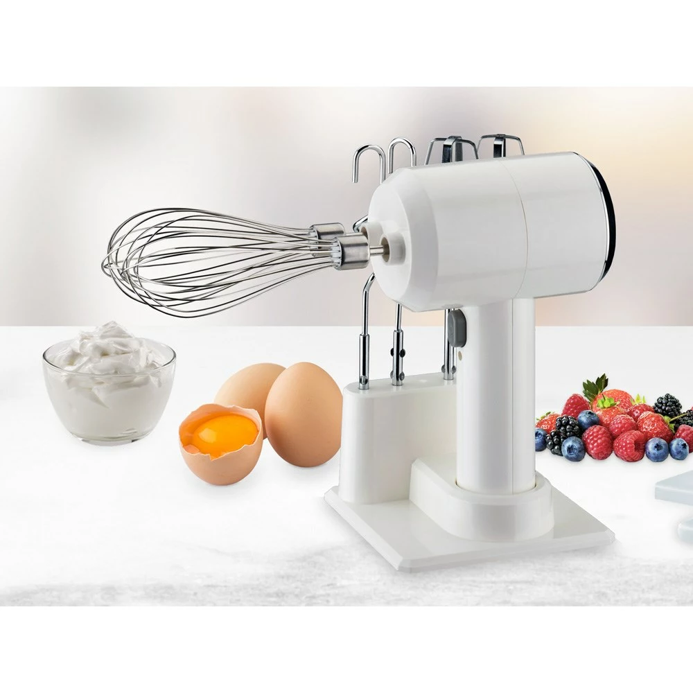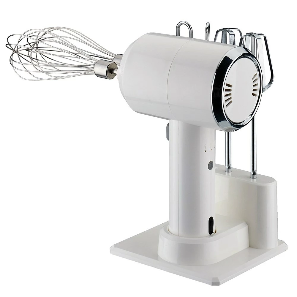 Mix, beat, whisk, knead, charge and store with the all inclusive Healthy Choice Cordless Hand Mixer with Stand White