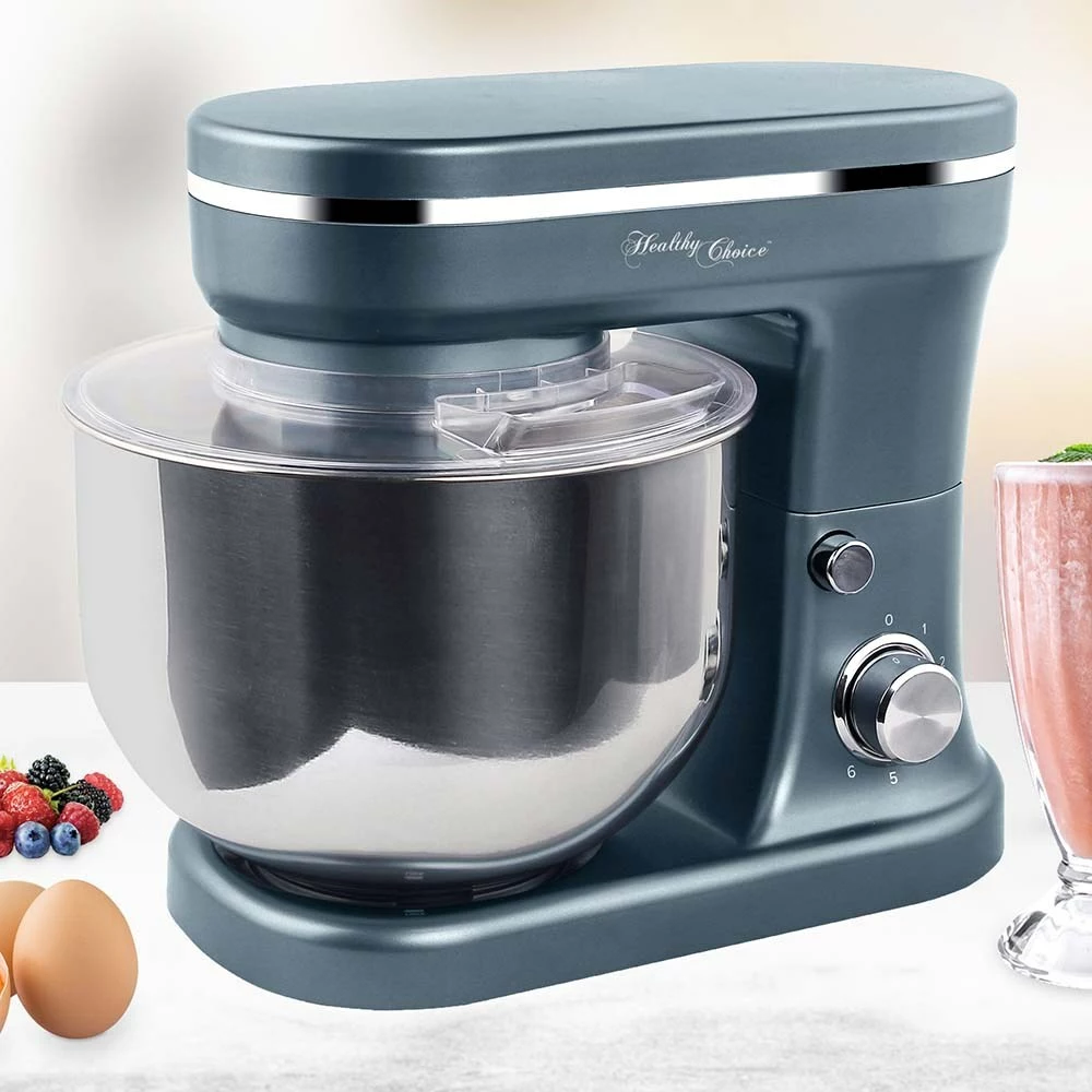 Say hello to your new kitchen companion, the Healthy Choice Powerful Mix Master Dark Blue. Including an egg whisk, dough hook and paddle beater, you can create whatever delicious recipes you desire, with much less effort than before. Whether its home made bread, pastry, cake, meringue or just beaten eggs, the Healthy Choice Powerful Mix Master Dark Blue is here to assist you. Boasting a strong planetary mixing action and a robust gear mechanism, the Healthy Choice Powerful Mix Master Dark Blue will ensure smooth and even handling of whatever ingredients you put in to it’s generously sized, sturdy 5L stainless steel bowl. The Healthy Choice Powerful Mix Master Dark Blue is also available in a range of other colour to complement your kitchen.