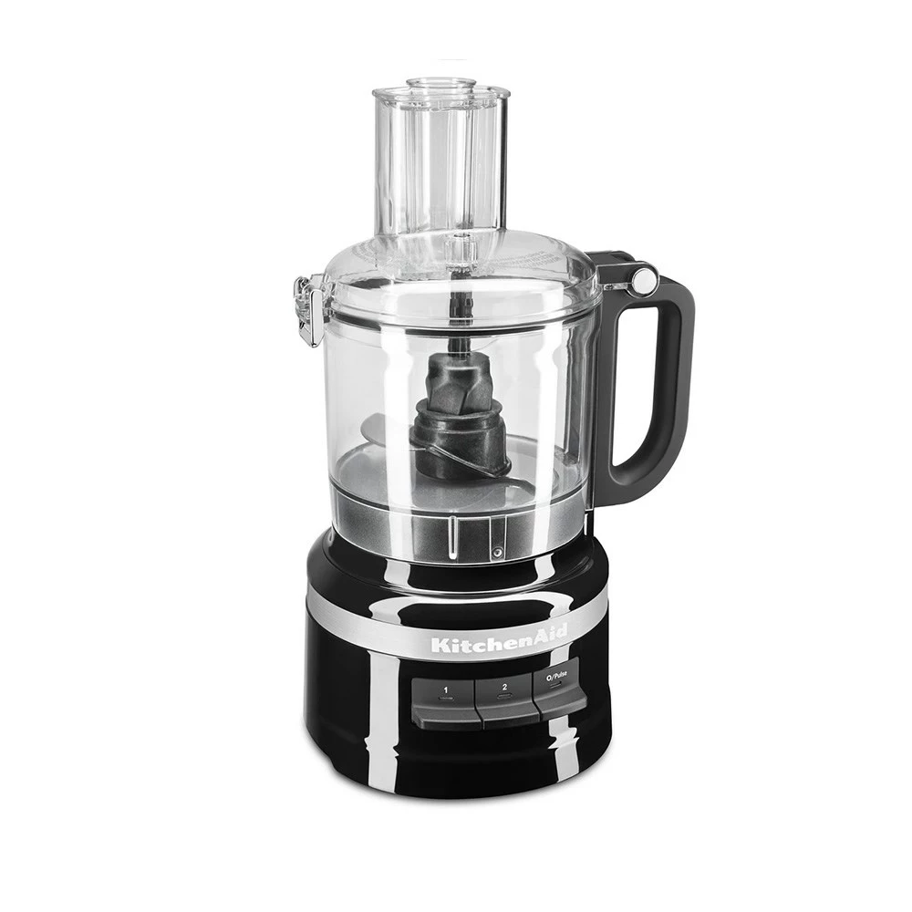 Bring versatility and style to your kitchen with the KitchenAid 7 Cup Food Processor! This highly functional food processor features multiple processing options so you can quickly and easily create delicious recipes at home. This food processor comes complete with a multi-purpose blade, a reversible shred disc, a dough blade, and a thick slicing disk for effortless chopping, slicing, pureeing and kneading. Offering low, high and pulse speed settings, the KitchenAid 7 Cup Food Processor is the perfect appliance for preparing all types of ingredients. Compact in design, the KitchenAid 7 Cup Food Processor boasts a sophisticated Onyx Black body that looks luxuriously stylish in any kitchen. Explore your passion for food and get creative in the kitchen with the KitchenAid 7 Cup Food Processor!