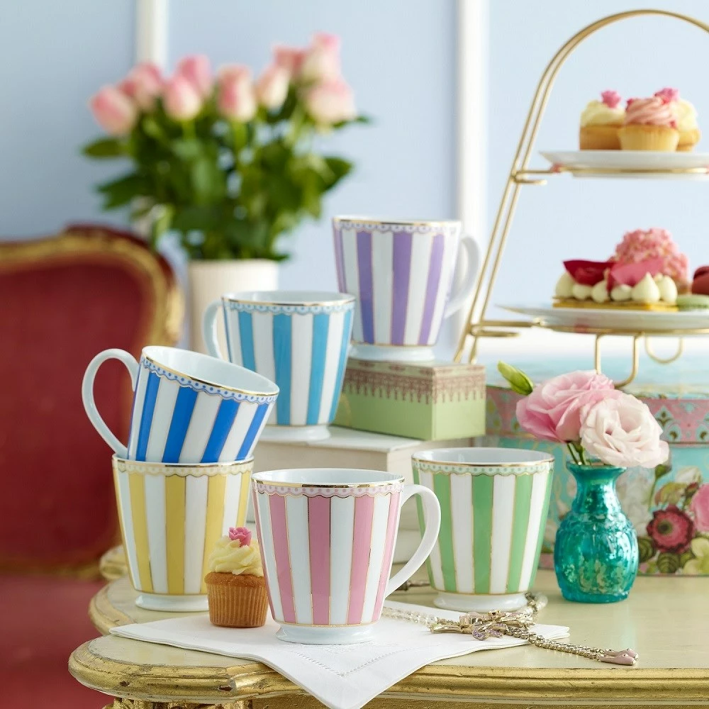The Noritake Carnivale Mug 370ml Green combines beautiful pastels and luxurious gold banding for the ultimate tea time experience