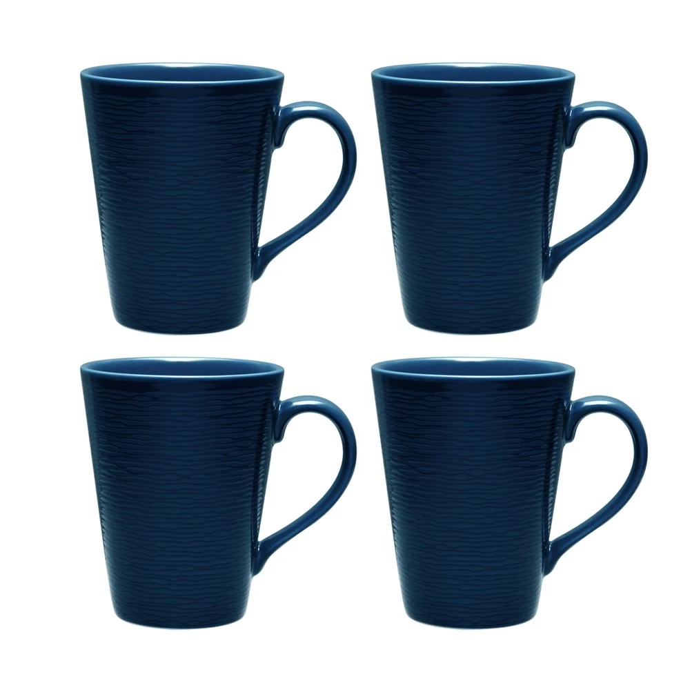 The Noritake Navy on Navy Swirl Mug Set of 4 is a tall and elegant mug that will match any home. Its conical shape and gently textured swirl pattern make a statement in sophisticated good taste and you can complete the look with the Noritake Navy on Navy Swirl Dinner Set. Made from durable and chip resistant porcelain, the Noritake Navy on Navy Swirl Mug Set of 4 is microwave safe and dishwasher safe for easy and convenient cleaning.