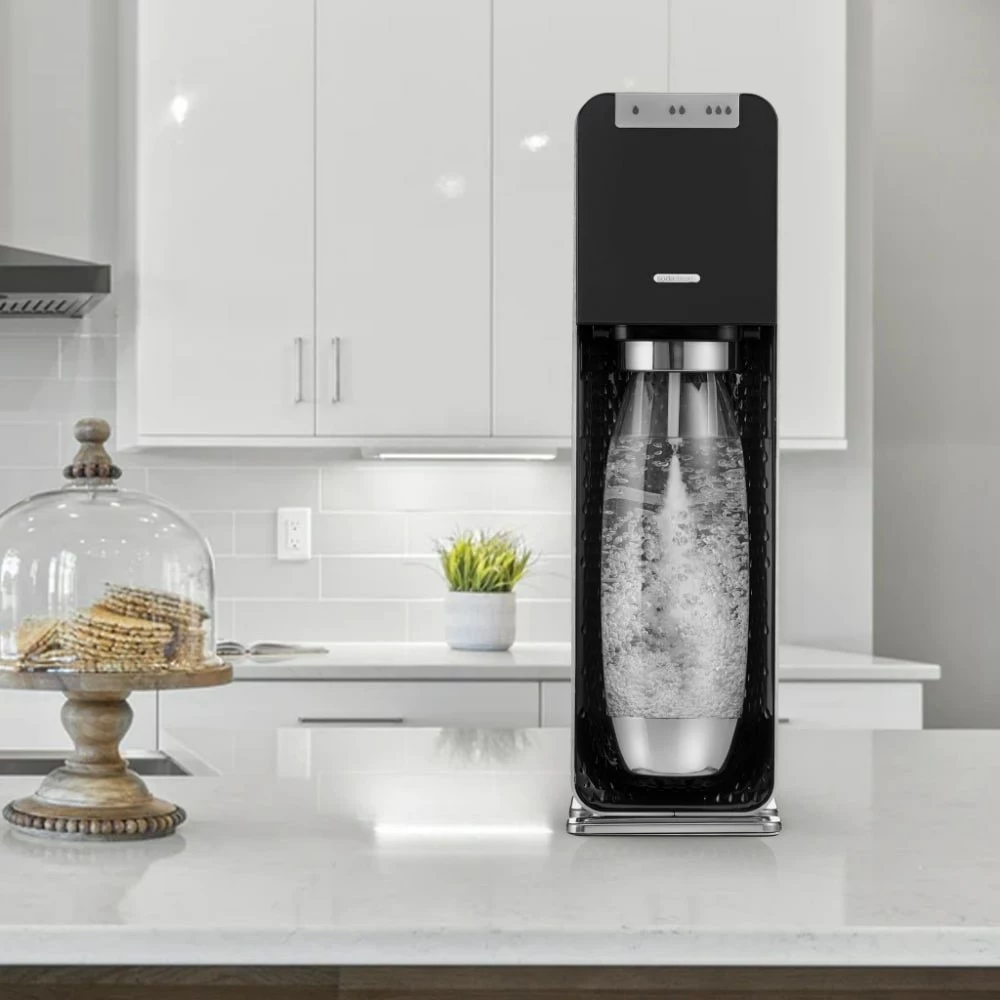 Create premium carbonated water at the touch of a button with the latest SodaStream Power Black Sparkling Water Maker