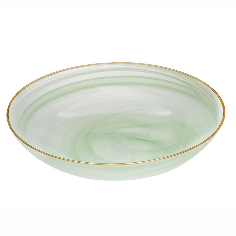 Featuring opulent swirls of colour and soft gold rims, the Tempa Ismay Serving Bowl is sure to be a head turner at your next gathering. The Ismay collection hosts a variety of sizes allowing you to select the perfect size for your dish. Recognised for their sleek and minimalist aesthetic, Tempa brings you quality, function and luxurious modern design. Perfect for dishes such as broccolini and pasta this shallow 27cm bowl will instantly bring fine dining to the table. This stunning bowl is available in three colours: Blue, Green, and White. Make it a set by pairing with the same colour or mix and match with contrasting colours. Complete the look by combining this bowl with the Tempa Ismay Large Oblong Platter.