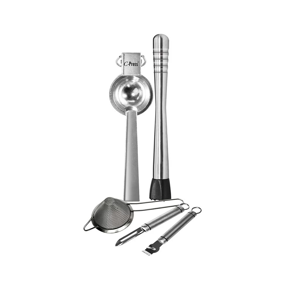 - Includes juicer/press, muddler, strainer, zester, and peeler